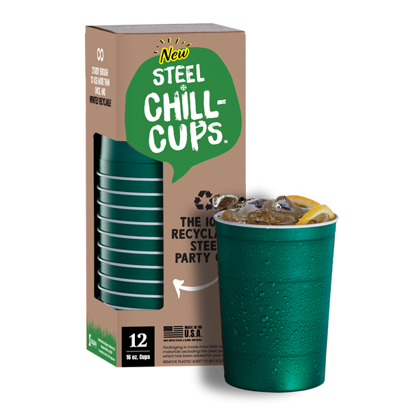 Steel Chill-Cups are produced by a leading U.S. metal manufacturer, with production facilities located across the continental U.S. Our premium custom party cups are made in our Toppenish, WA location. They can be full-color imprinted as branded or custom party cups that make a statement about you or your brand!.
