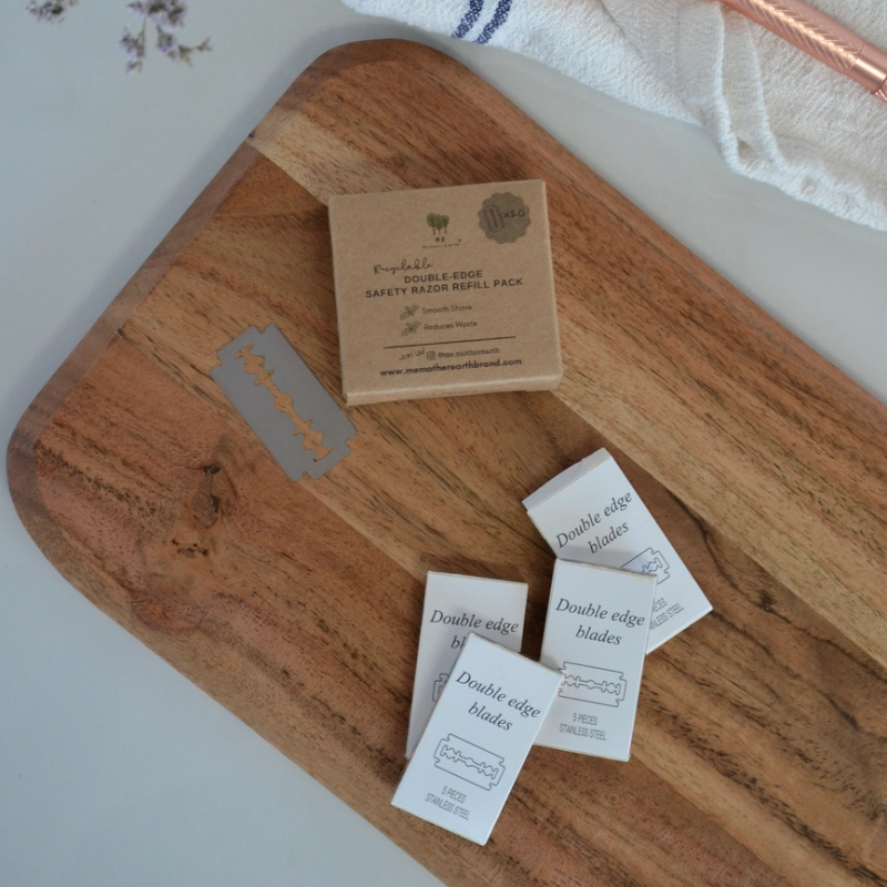 Our safety razor refill pack includes 20 replacement refills for our safety razor. They are made from high-quality stainless steel, ensuring a sharp and long-lasting edge for your plastic-free shaving needs.